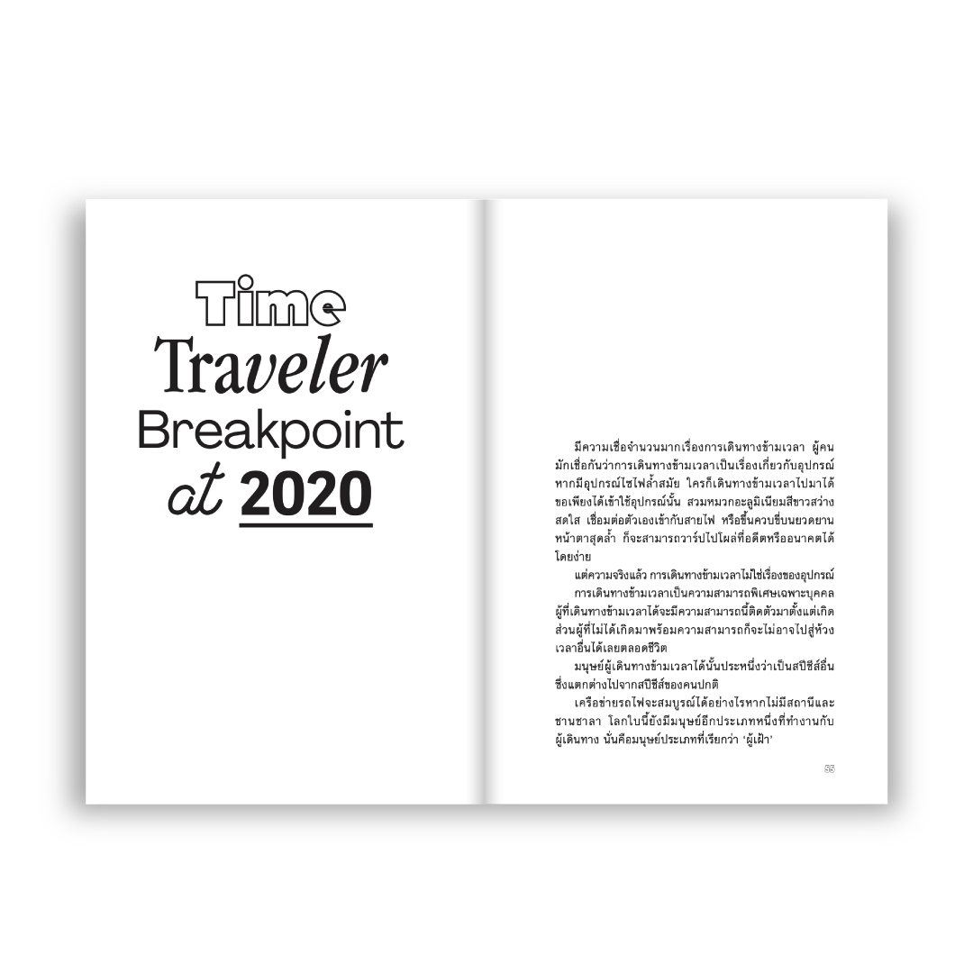 8 เรื่องสั้นหลากรสชาติที่ยืนอยู่บนเส้นเรื่องของการเปลี่ยนแปลงทางเวลาและกายภาพ สิ่งที่เคยคุ้นชินกลับไม่เหมือนเดิม เหตุการณ์ที่เกิดขึ้นเริ่มพิลึกพิกล และรายล้อมไปด้วยตัวตนอื่นๆ ตั้งแต่เรื่องราวของผู้คนในเมืองที่แรกเกิดออกมาเป็นเพศหญิง แต่เมื่อถึงเวลาหนึ่งจะกลายเป็นชาย เรื่องราวหลังความตายของเด็กชายที่ยังไม่ไปสู่สุคติ เรื่องเล่าของกลุ่มคนที่ย้อนเวลาไปเพื่อเปลี่ยนแปลงการปกครอง เรื่องลับในบันทึกของจิดานันท์กับการเข้าไปในคาเฟ่ของนักย้อนเวลา เรื่องของผู้เฝ้ากาลเวลาที่อยากข้ามเวลาไปต่อเพราะใครบางคน และอีกหลายเรื่องในวันที่กาลเวลาผิดเพี้ยน