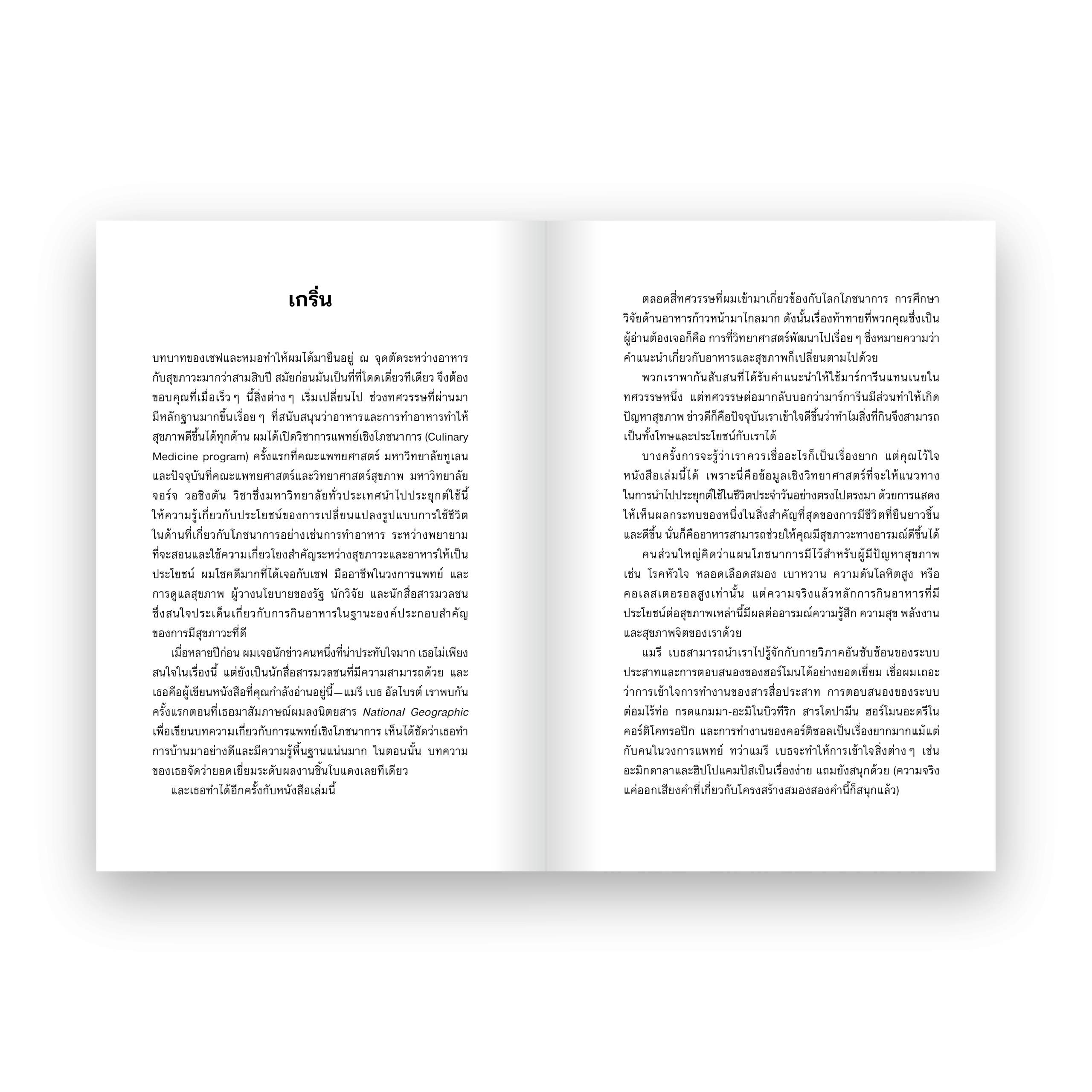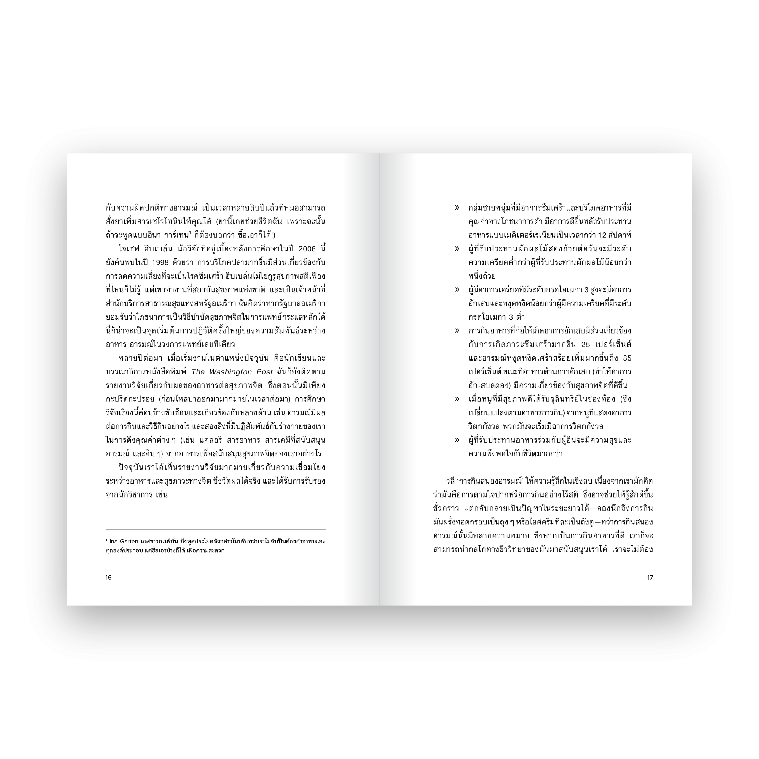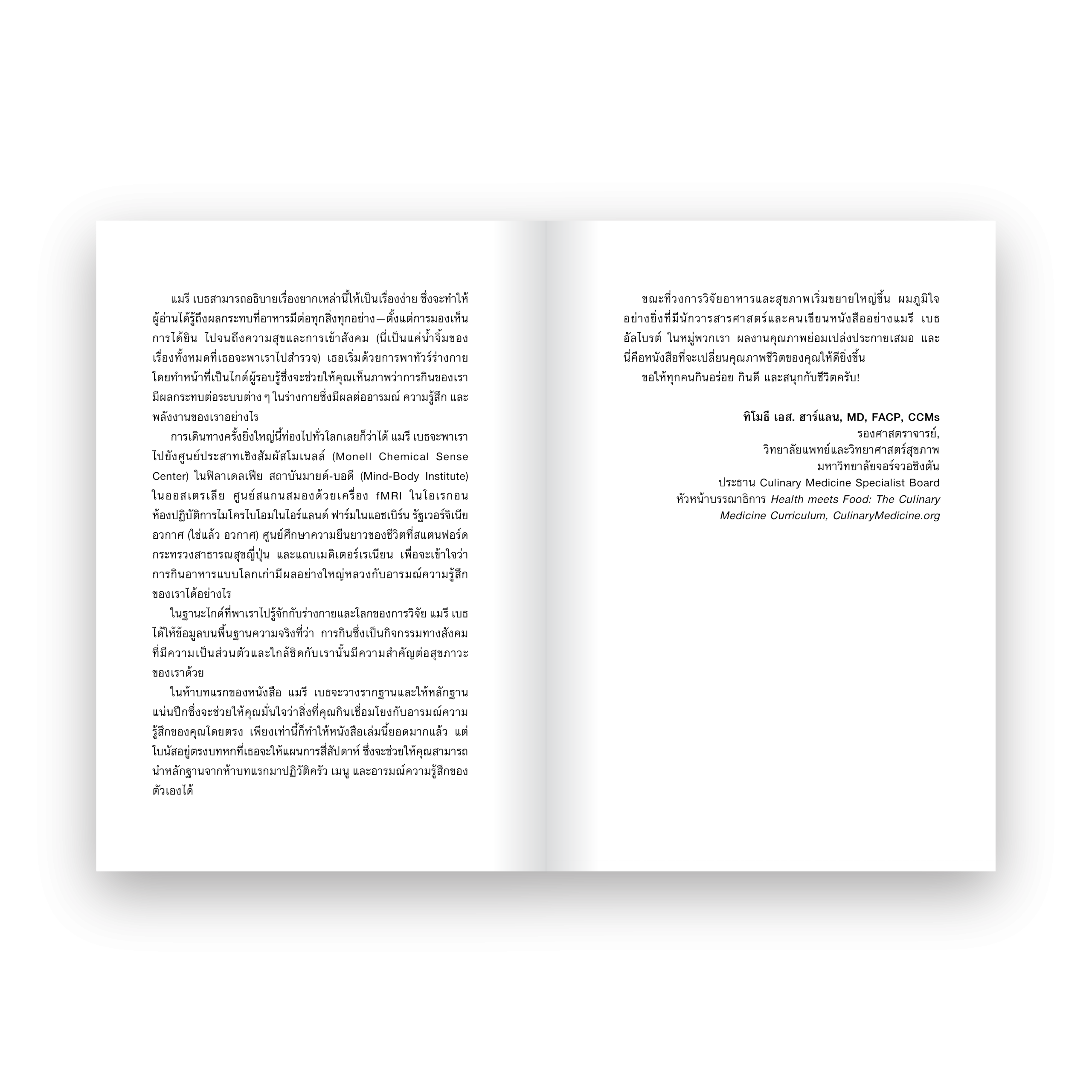 ผลงานโดย แมรี เบธ อัลไบรต์ นักเขียนด้านอาหารที่ออกไปสำรวจและรวบรวมงานวิจัยด้านประสาทวิทยา โภชนาการ และจุลชีววิทยา เพื่อหาหนทางทำให้ทุกมื้อที่ได้กินเป็นเรื่องดีต่อความสุขและสุขภาพจิตในระยะยาว พร้อมปิดท้ายด้วยสูตรอาหารที่ทำคุณได้อิ่มอร่อยอย่างมีความสุขง่ายๆ ที่บ้าน