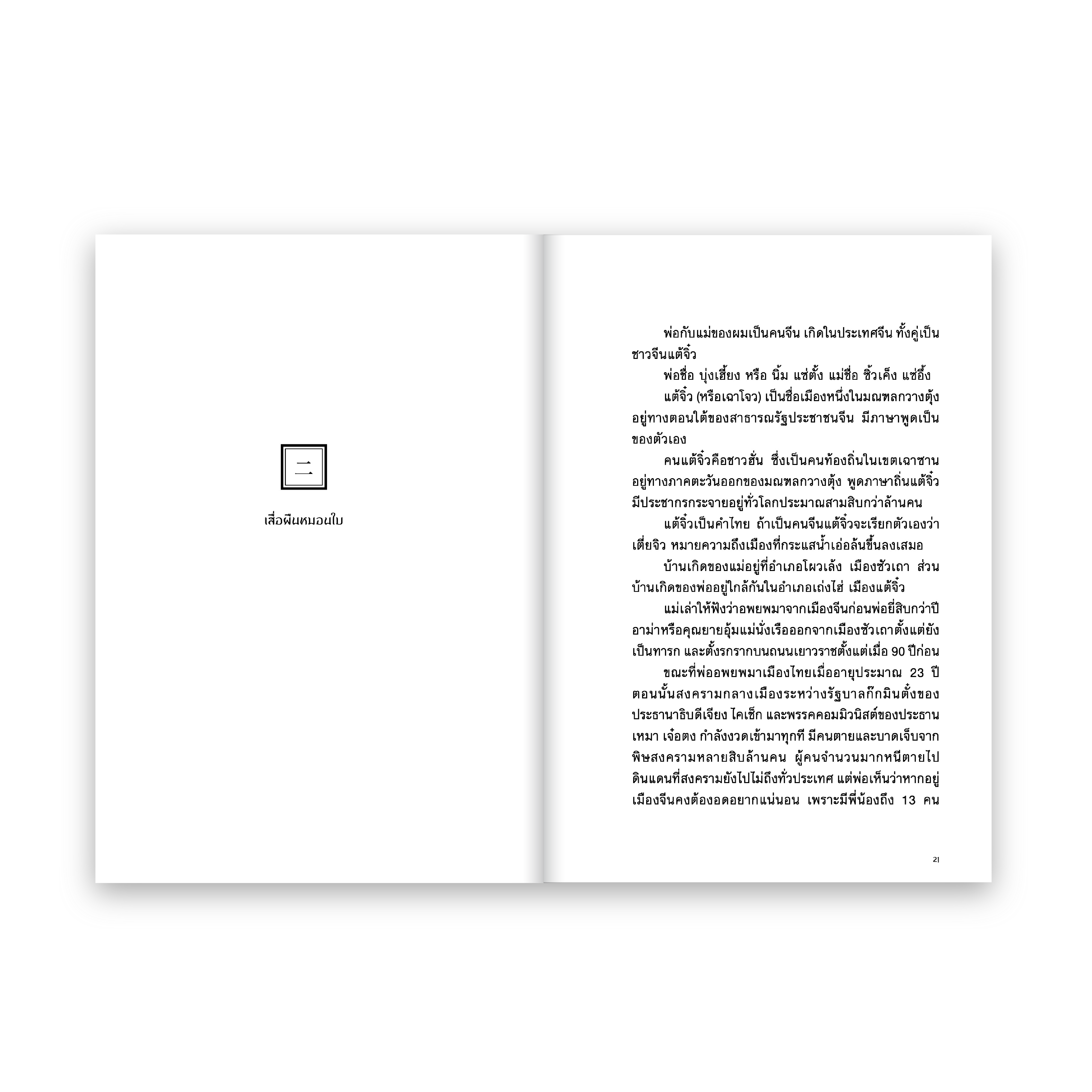 เรื่องราวของ ‘ป่าป๊า’ ชายผู้ลักลอบขึ้นเรือสำเภาอพยพหนีสงครามกลางเมือง มุ่งหน้าสู่เมืองไทยด้วยความหวังว่าจะสร้างเนื้อสร้างตัว หาเงินทองส่งกลับไปหาครอบครัวที่จากมาเฉกเช่นชาวจีนรุ่น ‘เสื่อผืนหมอนใบ’ คนอื่นๆ ทว่าโชคชะตาฟ้าลิขิตให้เขาต้องพบเจออุปสรรคนับครั้งไม่ถ้วน ล้มลุกคลุกคลานไปพร้อมๆ กับการดูแลคู่ชีวิตและลูกๆ ทั้งเจ็ดจนถึงวินาทีสุดท้าย ถ่ายทอดเรื่องราวจากบันทึกและความทรงจำของ ‘วันชัย ตันติวิทยาพิทักษ์’ อดีตบรรณาธิการบริหาร สารคดี และลูกชายคนที่ 6 ของนายนิ้ม แซ่ตั้ง
