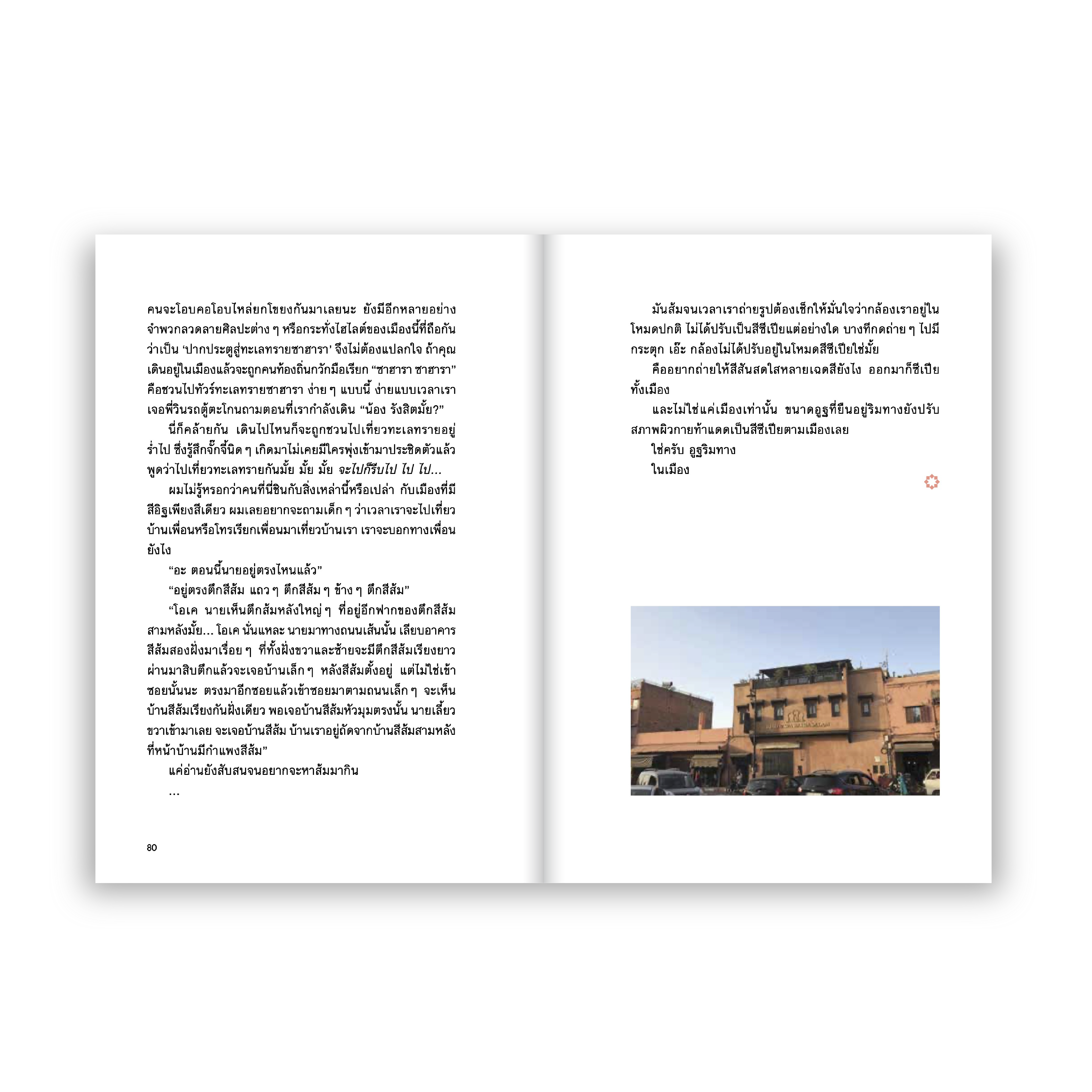 บันทึกการเดินทางไปถ่ายทำสารคดี และแวะเที่ยวต่อที่โมร็อกโกของ ‘บีเบนซ์’ นักเล่าเรื่องผู้เป็นมาแล้วทั้งสแตนด์อัพคอเมเดี้ยน พิธีกรรายการ ‘พื้นที่ชีวิต’ และอีสุกอีใส (…) กับเรื่องราวในสามสัปดาห์ที่พาแวะแล้วแวะอีกตลอดทาง แวะจนกลายเป็นทาส แวะจนเจอกลุ่มเด็กปล้นไก่ทอด แวะไปทะเลทรายซาฮารา แวะไปดูแพะบนต้นไม้ และแวะขี่อูฐ บนเส้นทางที่จะทำให้คุณขำจนท้องแข็ง และอุทานว่า ‘โมร็อกโกนั้นโก้จริงๆ’