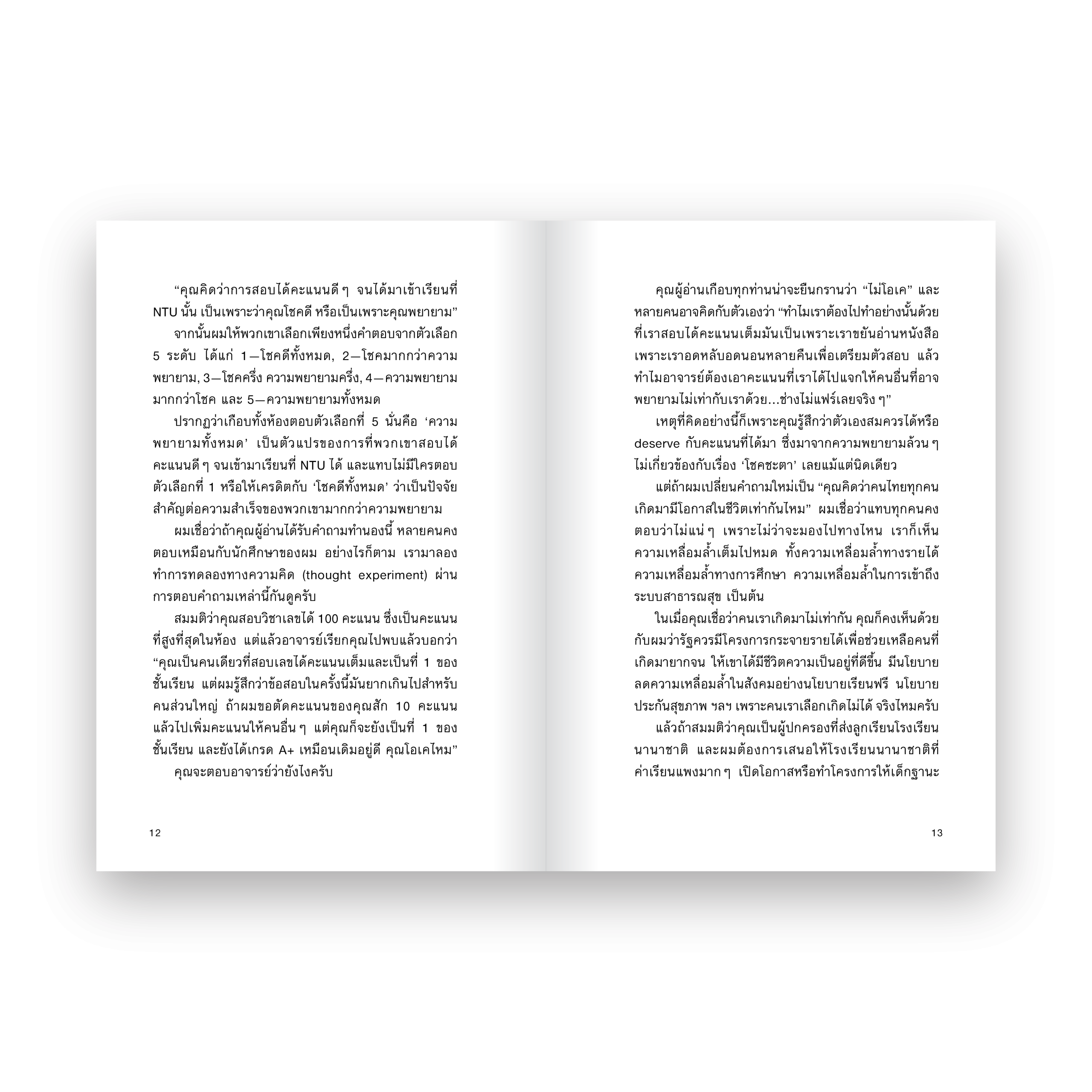 คนที่ไม่ประสบความสำเร็จแปลว่าพยายามไม่พอจริงหรือเปล่า คนเราจะใช้เงินที่ได้จากการเสี่ยงโชคง่ายกว่าการใช้เงินเดือน คนที่ชื่นชมตัวเองบ่อยๆ อาจไม่เห็นด้วยกับการกระจายรายได้ คนที่ไม่มีรถ ไม่มีบ้านเป็นของตัวเองในตอนนี้เป็นเพราะปีเกิดไม่ดี คนที่เชื่อว่าโลกยุติธรรมและเชื่อในกฎแห่งกรรมกลับชอบโทษเหยื่อ ร่วมค้นหาคำตอบ ทำความเข้าใจ ‘ระบบคุณธรรมนิยม’ ที่เชื่อว่า ‘ความสำเร็จ’ เกิดจากความสามารถและความพยายามล้วนๆ พร้อมสำรวจแง่มุมใหม่ว่าภายใต้ความสำเร็จเหล่านั้นอาจมี ‘โชคชะตา’ เข้ามาเป็นตัวแปรสำคัญและพัวพันกับโอกาสต่างๆ ในชีวิต หยิบสารพัดงานวิจัยมาอธิบายแบบเข้าใจง่ายโดย ‘ณัฐวุฒิ เผ่าทวี’ ศาสตราจารย์และนักเศรษฐศาสตร์ความสุข เจ้าของผลงานหนังสือ ‘THE HAPPINESS MANUAL พฤติกรรมความสุข’, ‘THE WHYS OF LIFE ชีวิตต้องสงสัย’ และ ‘THE HAPPIEST PERSON IN THE ROOM อยู่เย็นเป็นสูตร’