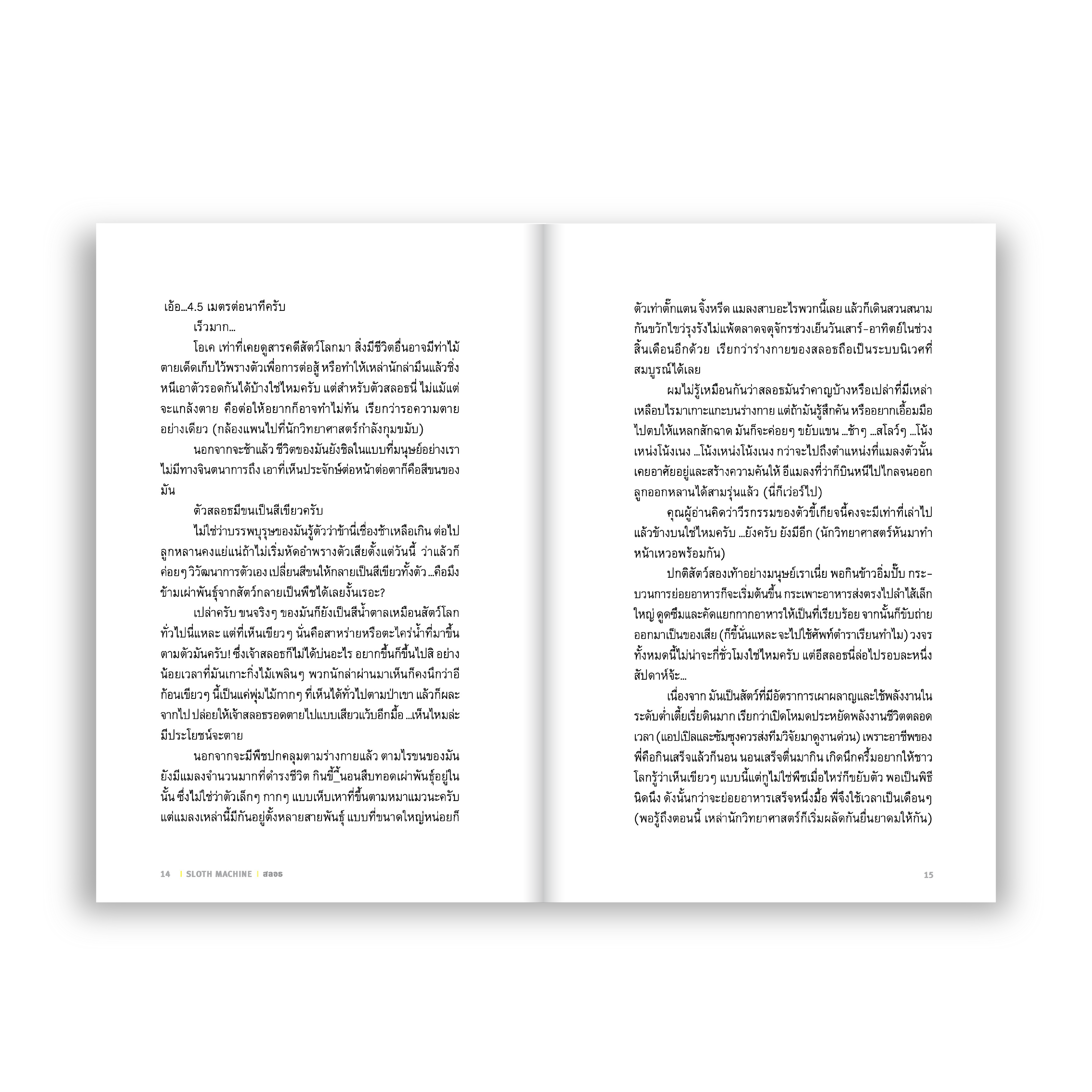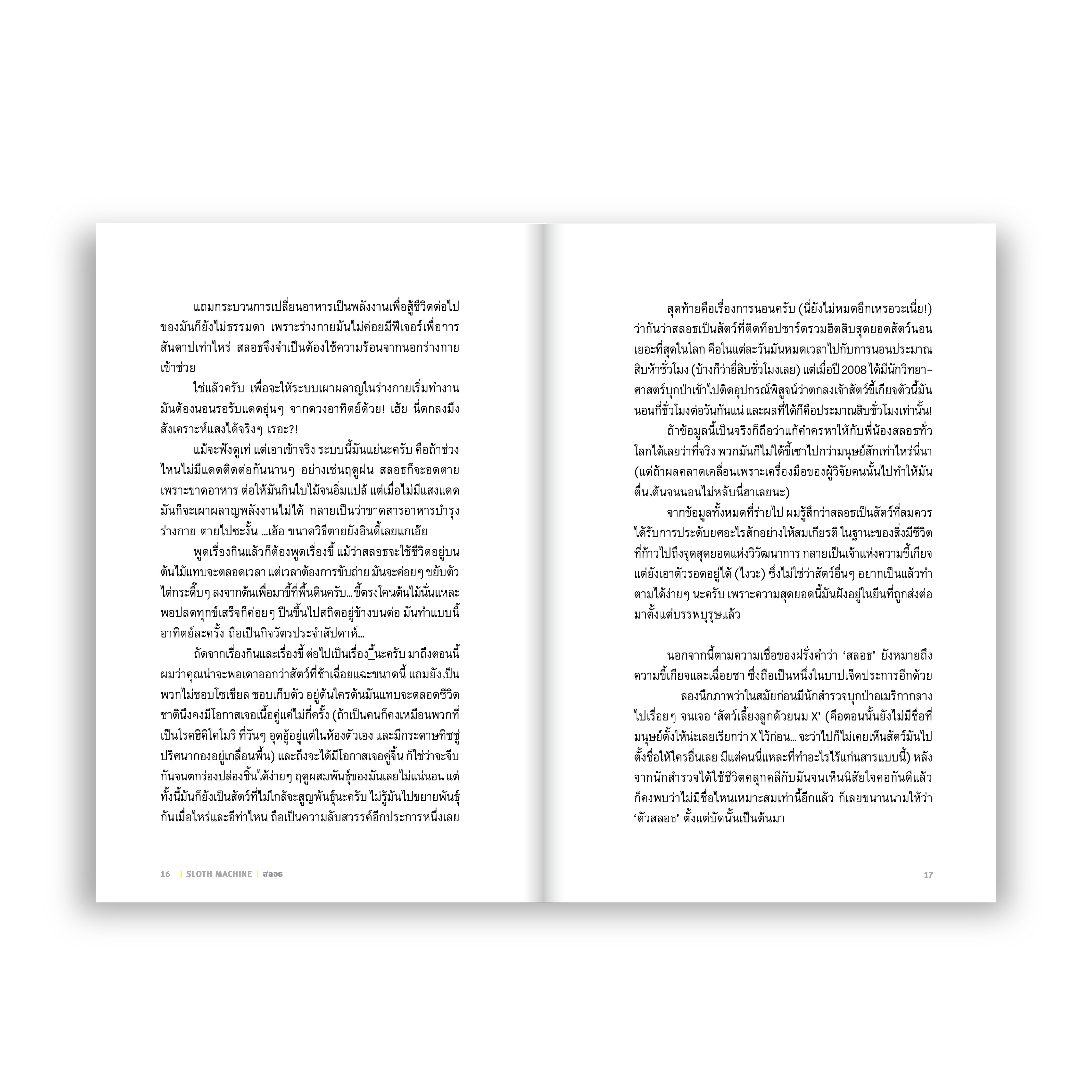 ทำไมคนเราไม่มีสิทธิ์ขี้เกียจ? สิ้นเสียงคำสงสัย ‘ปรัชญา สิงห์โต’ (หรือ iannnnn เจ้าของเดียวกับ ‘คือปะป๊าครองพิภพ’ และอดีตเฟลาธิการแห่งเว็บ Fail) ก็ลาออกจากงาน (แต่เจ้านายไม่ให้ออก…) มาพบกับวิถีชีวิตที่เหมาะสม เส้นทางที่จะทำให้ไม่ต้องไปนั่งแกร่วเซ็งรถติดบนถนน ไม่ต้องดันทุรังแข่งขันกับคนอื่น และการพยายามอยู่รอดให้ได้กับการมีชีวิตที่อืดเหมือนตัวสลอธ (คือสโลว์ไลฟ์ยังเร็วกว่าอีกน่ะ)