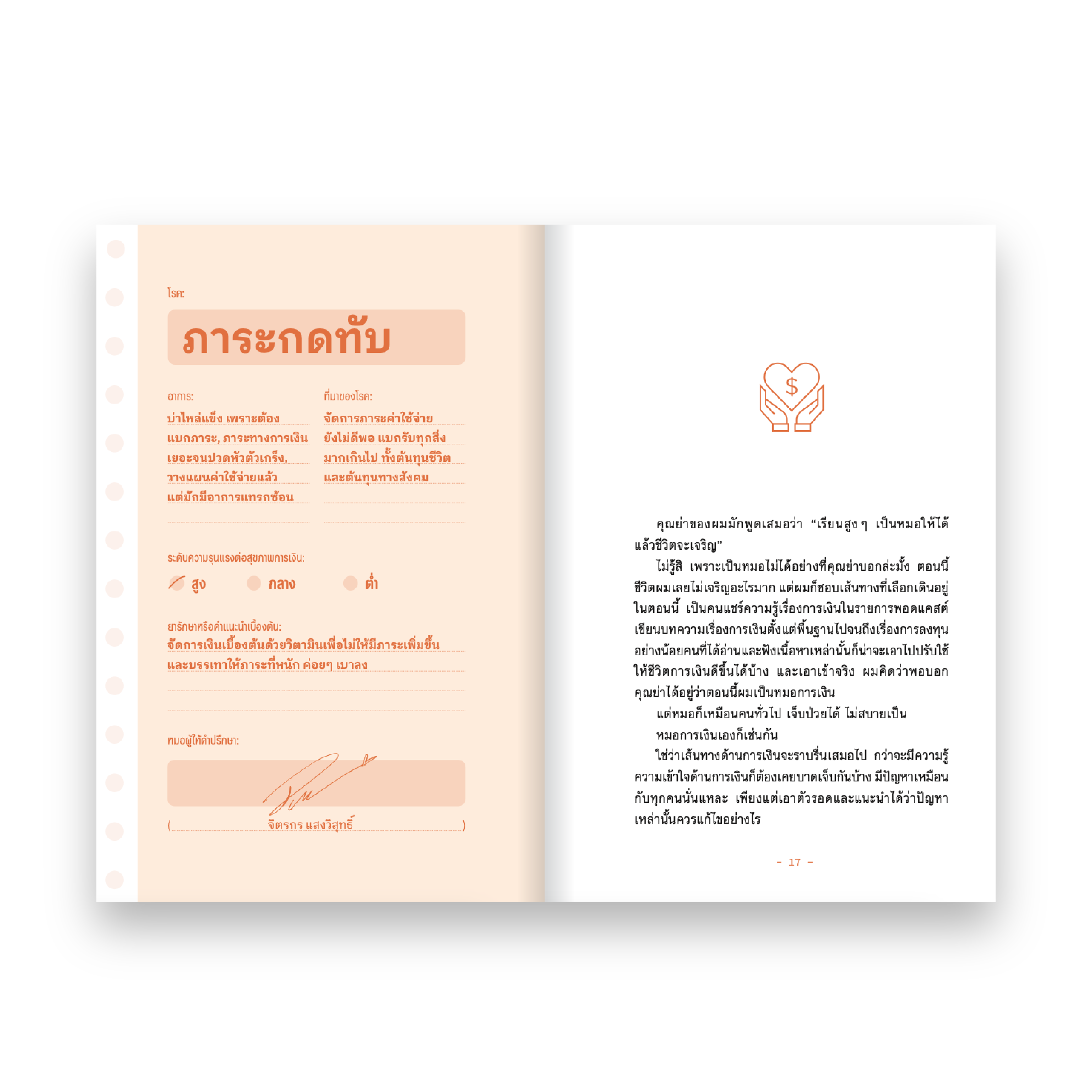 โปรเจกต์พิเศษจากแคมเปญ ‘Money Syndrome รู้ทันโรคทรัพย์วาย เสริมภูมิการลงทุน’ โดยกองทุนส่งเสริมการพัฒนาตลาดทุน (CMDF) ร่วมกับตลาดหลักทรัพย์แห่งประเทศไทย ที่อยากให้ทุกคนเข้าใจว่าการลงทุนเป็นเรื่องใกล้ตัว และการเก็บออมไม่ใช่เรื่องยาก เริ่มจากหนังสือเล่มนี้ที่ไม่มีขาย แต่มีให้อ่านฟรีที่ www.setinvestnow.com/money-syndrome/index.html