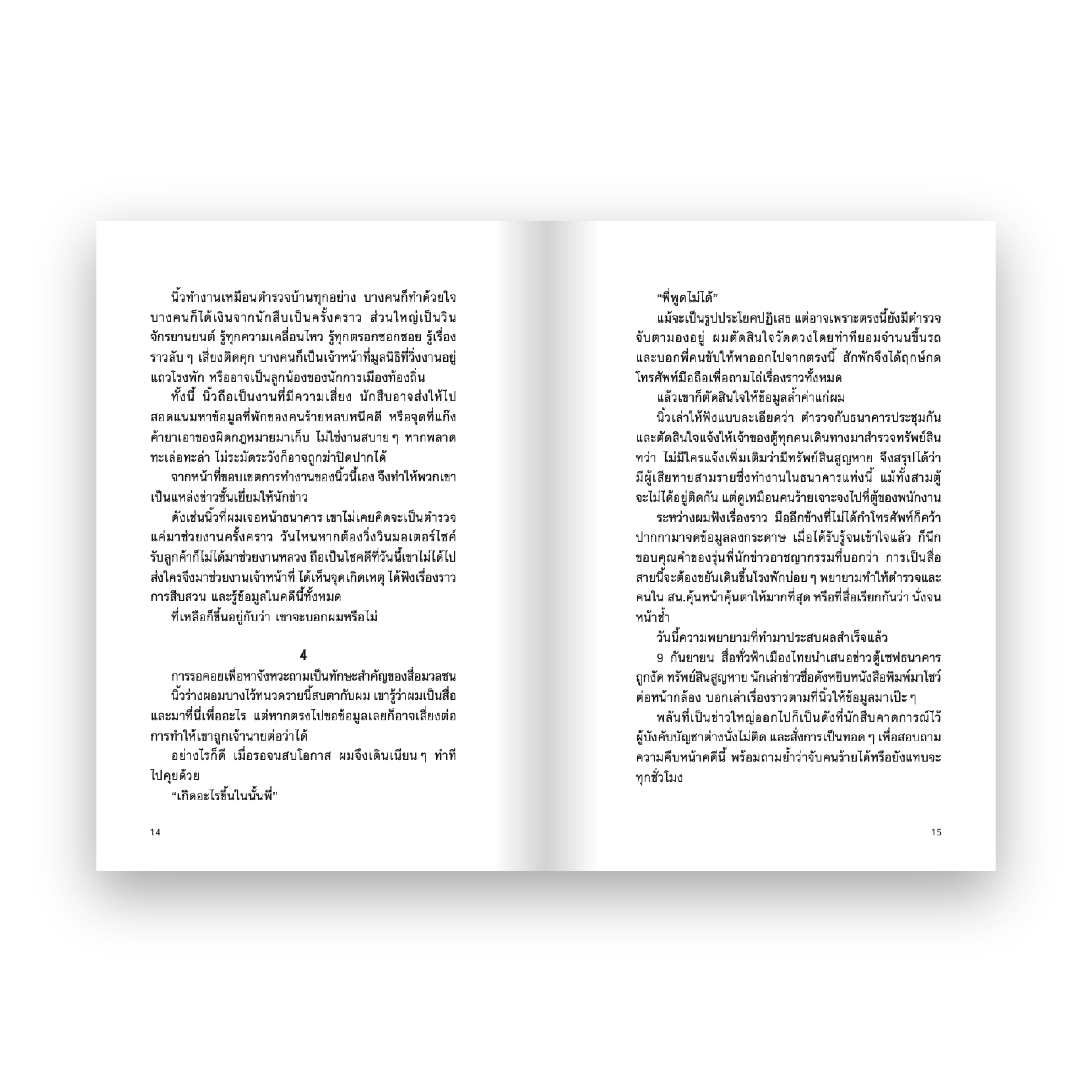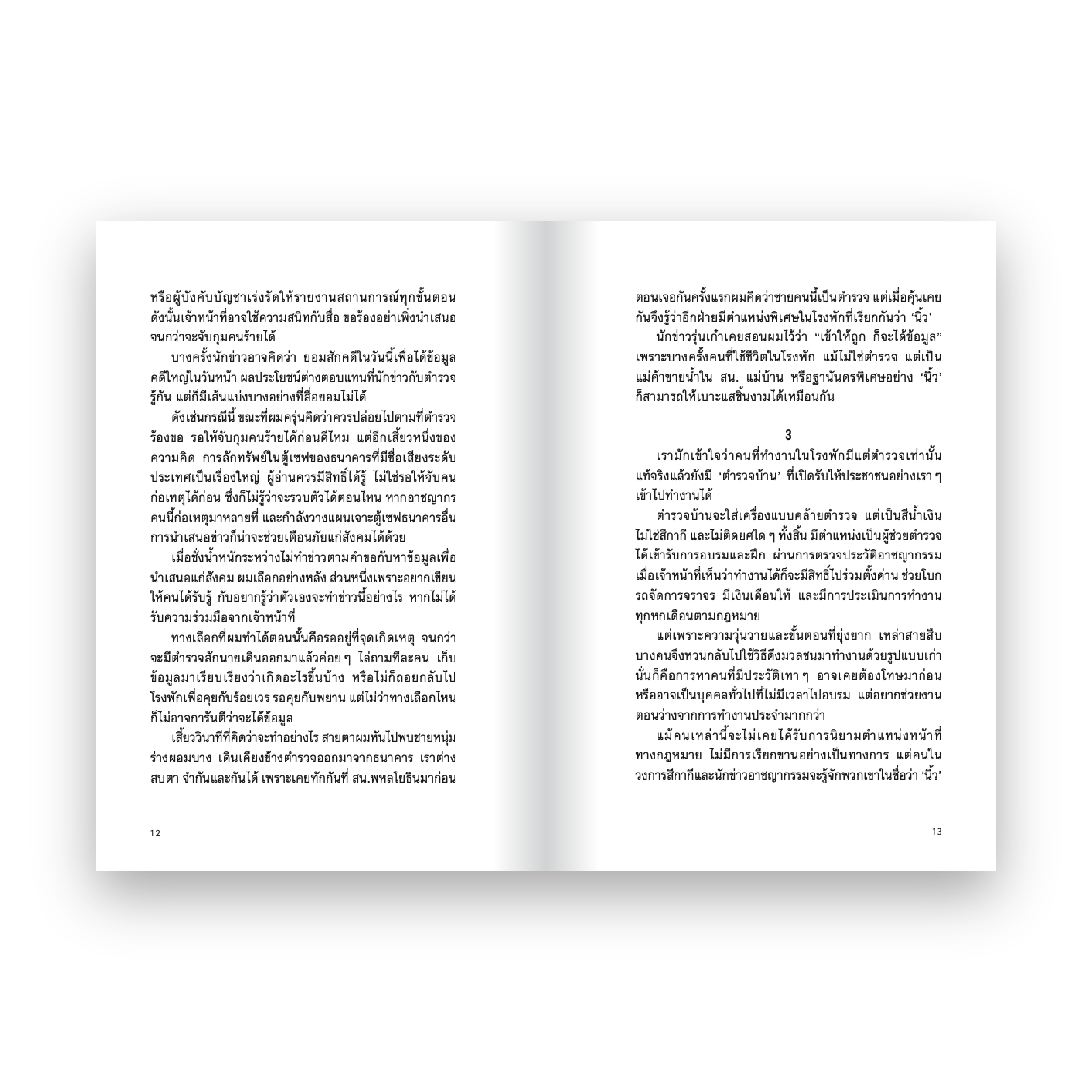 หนังสือแนว True Crime จากคดีอาชญากรรมในประเทศไทย บันทึกเรื่องราวและบรรยากาศรายล้อมที่ไม่อยู่ในข่าว พร้อมกับพาไปดูการทำงานสืบสวนของเจ้าหน้าที่ตำรวจ และการลงพื้นที่หาข้อมูลของนักข่าวอาชญากรรม