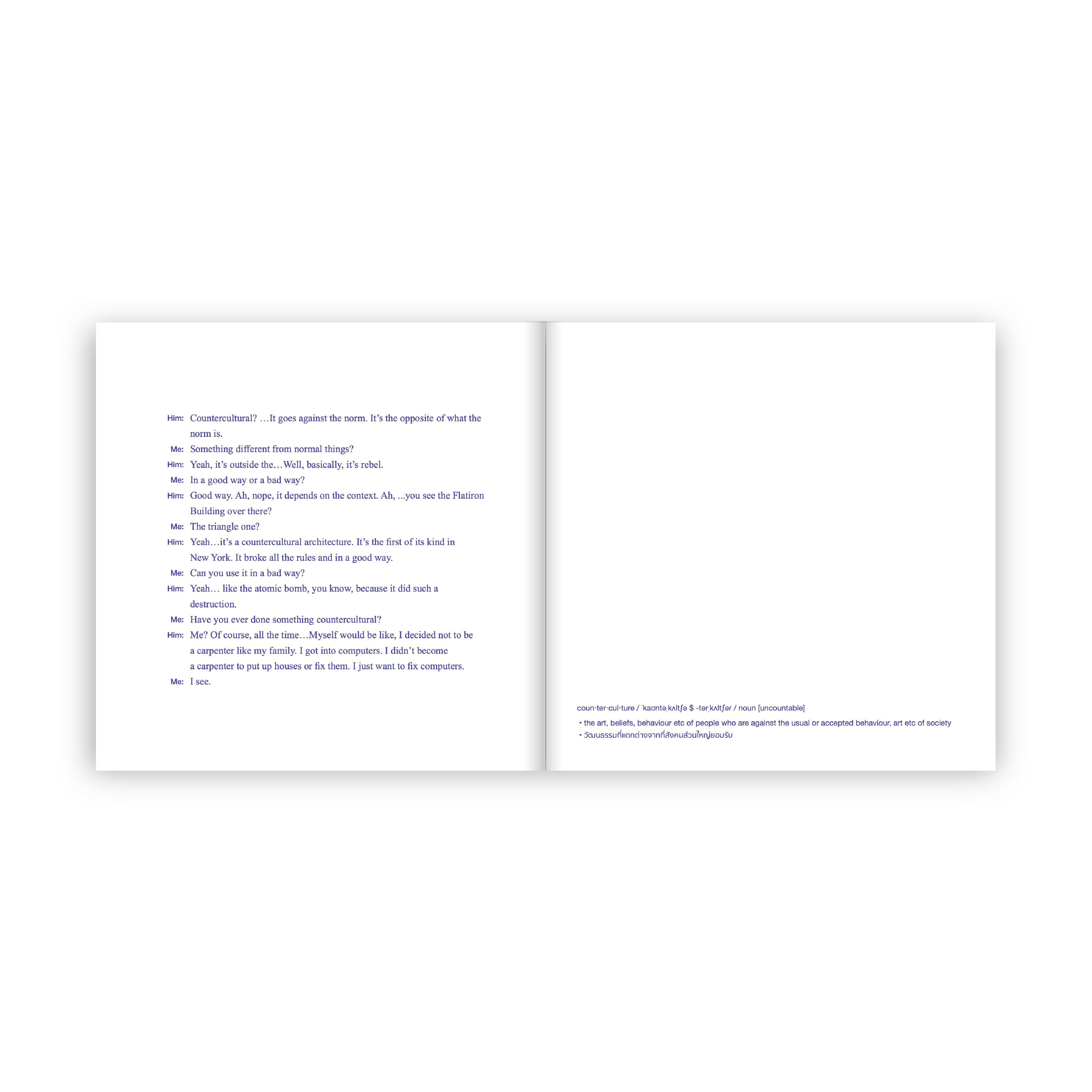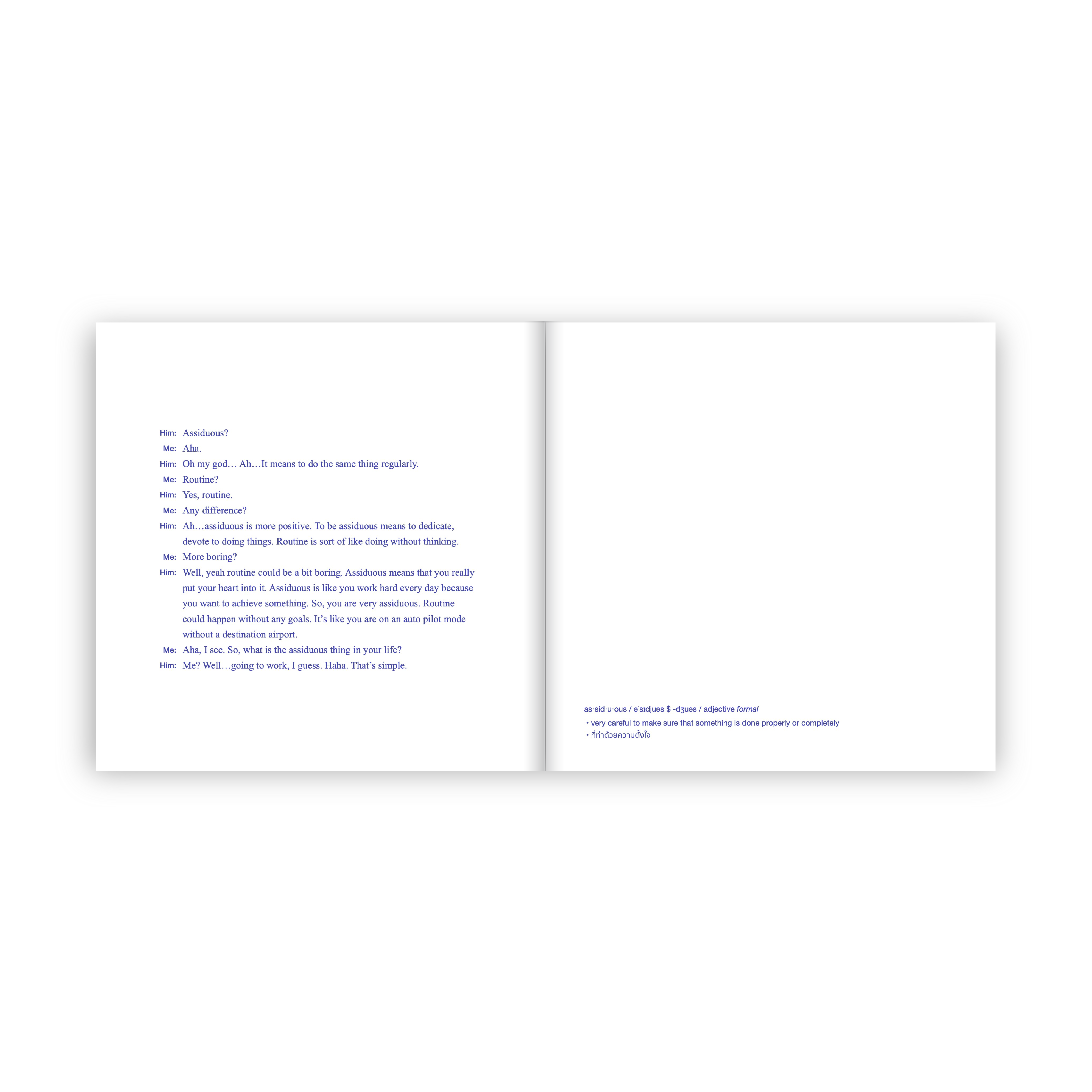บันทึกบทสนทนาค้นหาความหมายของถ้อยคำ โดย ‘ธนชาติ ศิริภัทราชัย’ ชาวไทยที่ไปศึกษาต่อในนิวยอร์ก กับการสงสัยในคำศัพท์ที่ไม่ค่อยพบเจอในชีวิตประจำวัน จนต้องไหว้วานให้คนแปลกหน้าที่พบเจอช่วยอธิบายคำศัพท์สุดแสนนามธรรมให้เข้าใจได้โดยไว