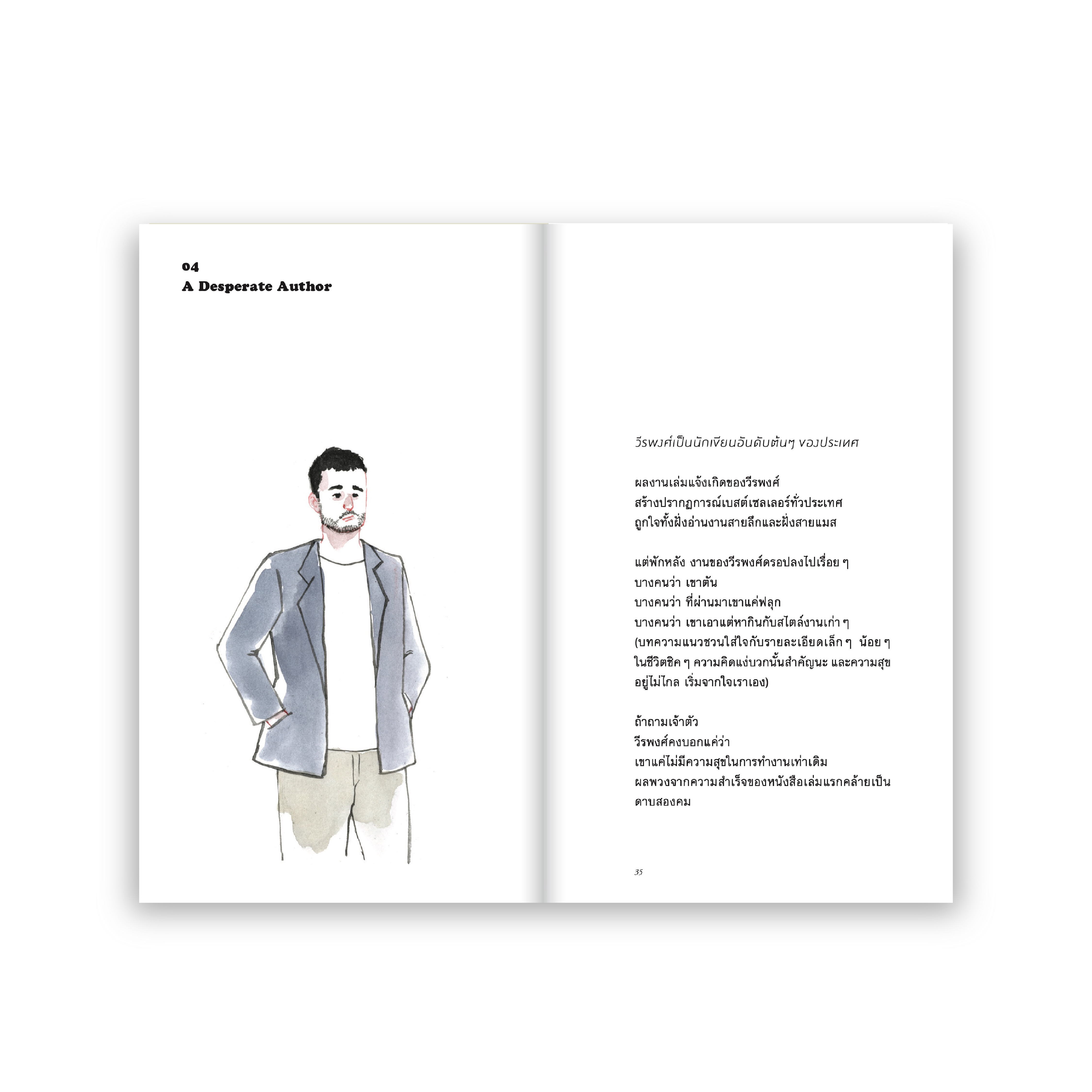 25 เรื่องสั้นสั้นเอาแต่ใจ อ่านไวๆ ในหนึ่งเหม่อลอย ผลงานล่าสุดของ ‘ธนชาติ ศิริภัทราชัย’ นักเขียนที่มีลีลาการเล่าเรื่องกึ่งเศร้ากึ่งขำ ว่าด้วยความสัมพันธ์ที่จางหาย ความไกลที่ไม่อยากย้อนนึก ความรู้สึกแฮปปี้เอนดิ้งของเหล่าตัวละครที่จะทำให้ผู้อ่านต้องขำ (หรือเศร้า) จนปวดหัวกับเรื่องราวที่พวกเขาพบเจอ ทั้งความกระอักกระอ่วนของคู่รักในวันแต่งงาน ความสัมพันธ์ที่อึมครึมของพ่อแม่ที่บังคับไม่ให้ลูกเรียนพิเศษ ความตึงเครียดของหญิงสาวที่ระแวงผู้คนในร้านกาแฟ และความบ้าบอของคอร์สโอมากาเสะที่กินเวลายาวนานเกินกว่าที่ใครจะคาดคิด