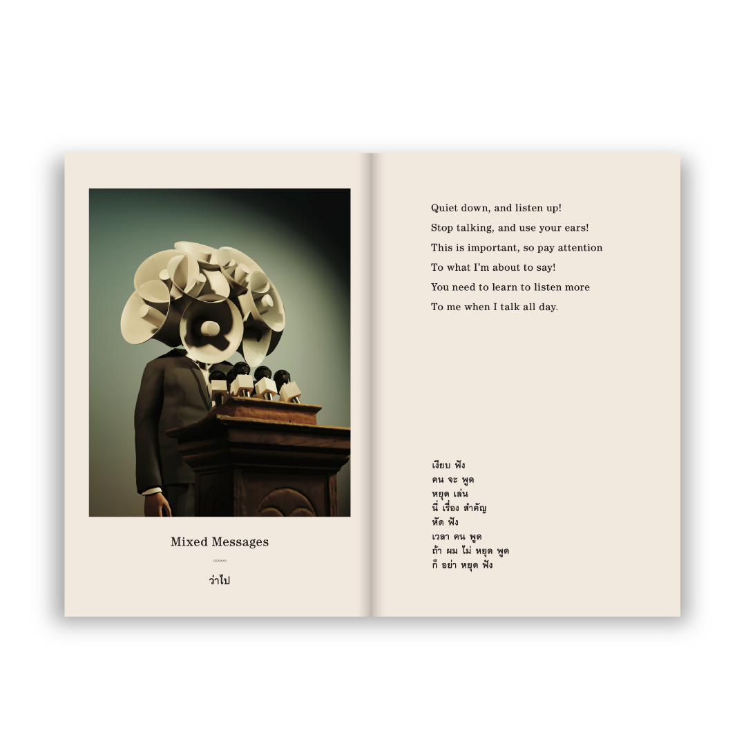 นิทานภาพแสนเศร้าที่ไม่อิงกับบุคคล เหตุการณ์ หรือสถานที่ใด โดยศิลปินเจ้าของเพจคอนเทนต์ภาพสามมิติแนวเซอร์เรียล ‘uninspired by current events’ ที่คัดสรรผลงานฮิต 50 ภาพ และสร้างสรรค์ขึ้นใหม่อีก 10 ภาพ พร้อมแต่งนิทานสั้นประกอบภาพทั้งไทย-อังกฤษ เปิดมุมมองให้ตีความแบบแสบๆ คันๆ ยิ่งกว่าเดิม