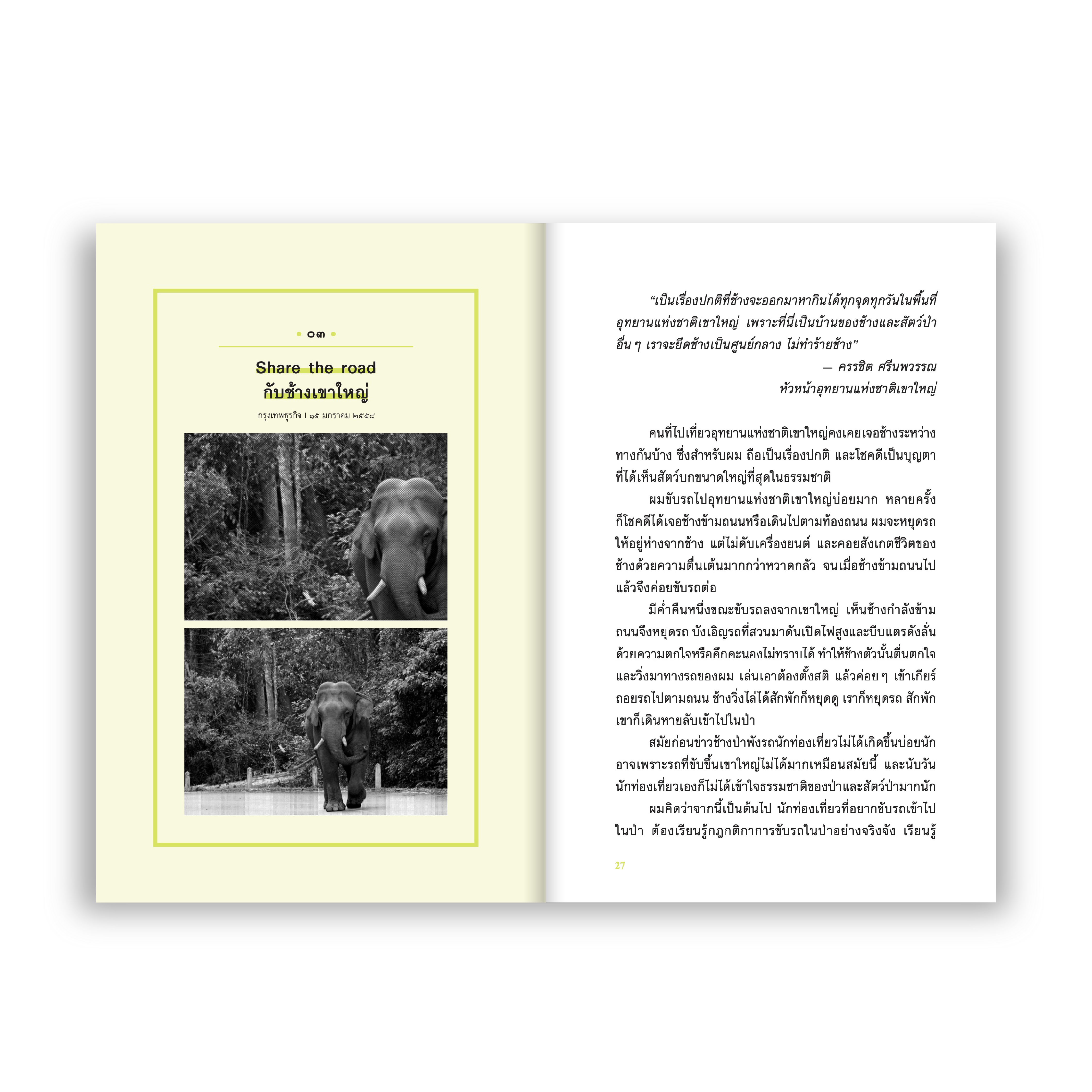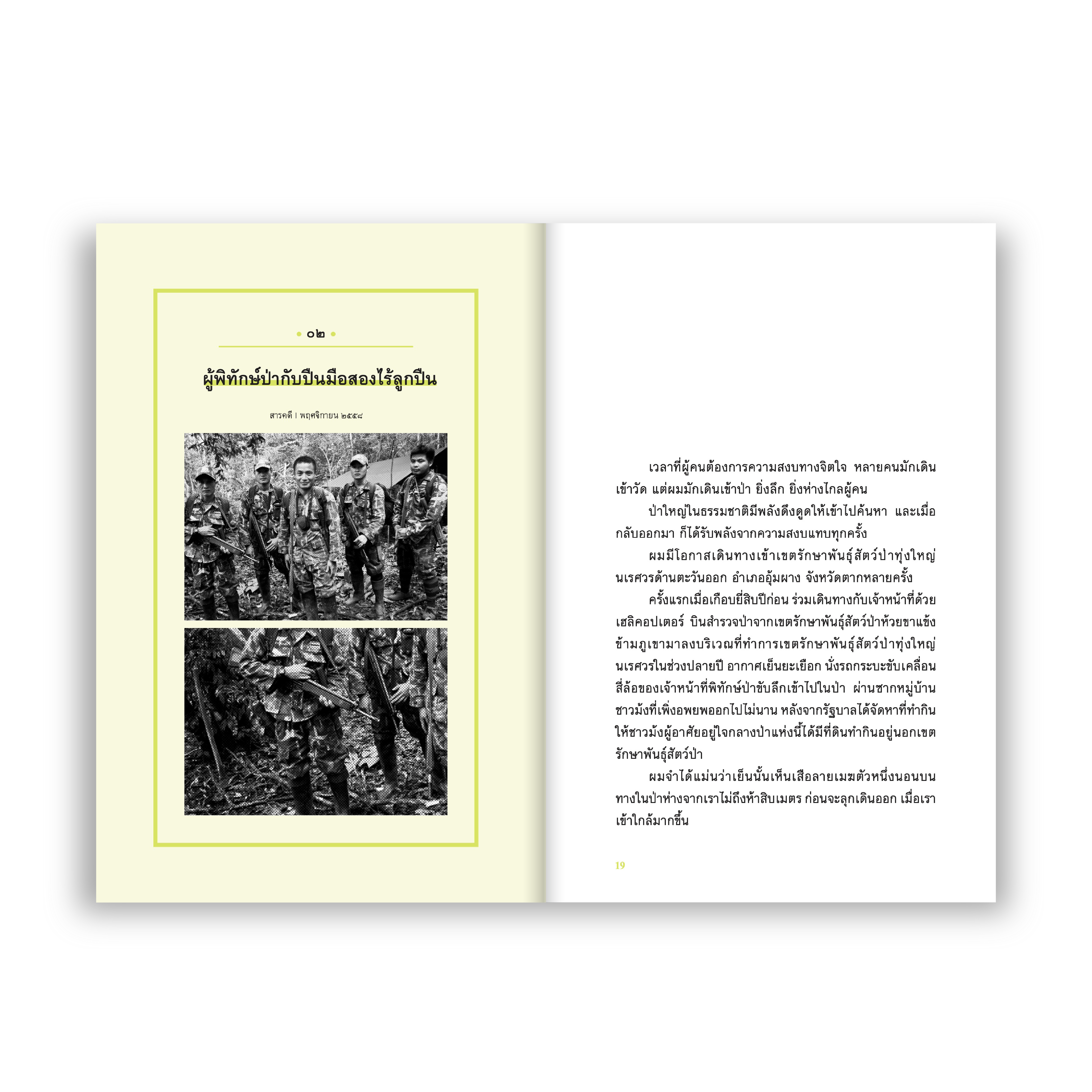 ชุดบทความที่สั่งสมมาจากประสบการณ์ ทั้งจากการเดินทางและการสะสมข้อมูลของ ‘วันชัย ตันติวิทยาพิทักษ์’ อดีตบรรณาธิการบริหารนิตยสาร สารคดี กับเรื่องราวที่เป็นดังกระบอกเสียงของสัตว์ป่าและธรรมชาติอย่างการจากไปของปลากระเบนราหู การเสี่ยงสูญพันธุ์ของนกแห่งสรวงสรรค์ ผลกระทบจากไส้กรอกที่ส่งผลถึงต้นไม้ ชีวิตของนักอนุรักษ์ป่า ไปจนถึงวีรกรรมของผู้ที่ต่อสู้เพื่อธรรมชาติด้วยชีวิต